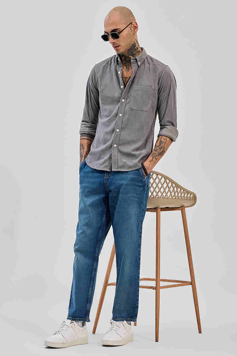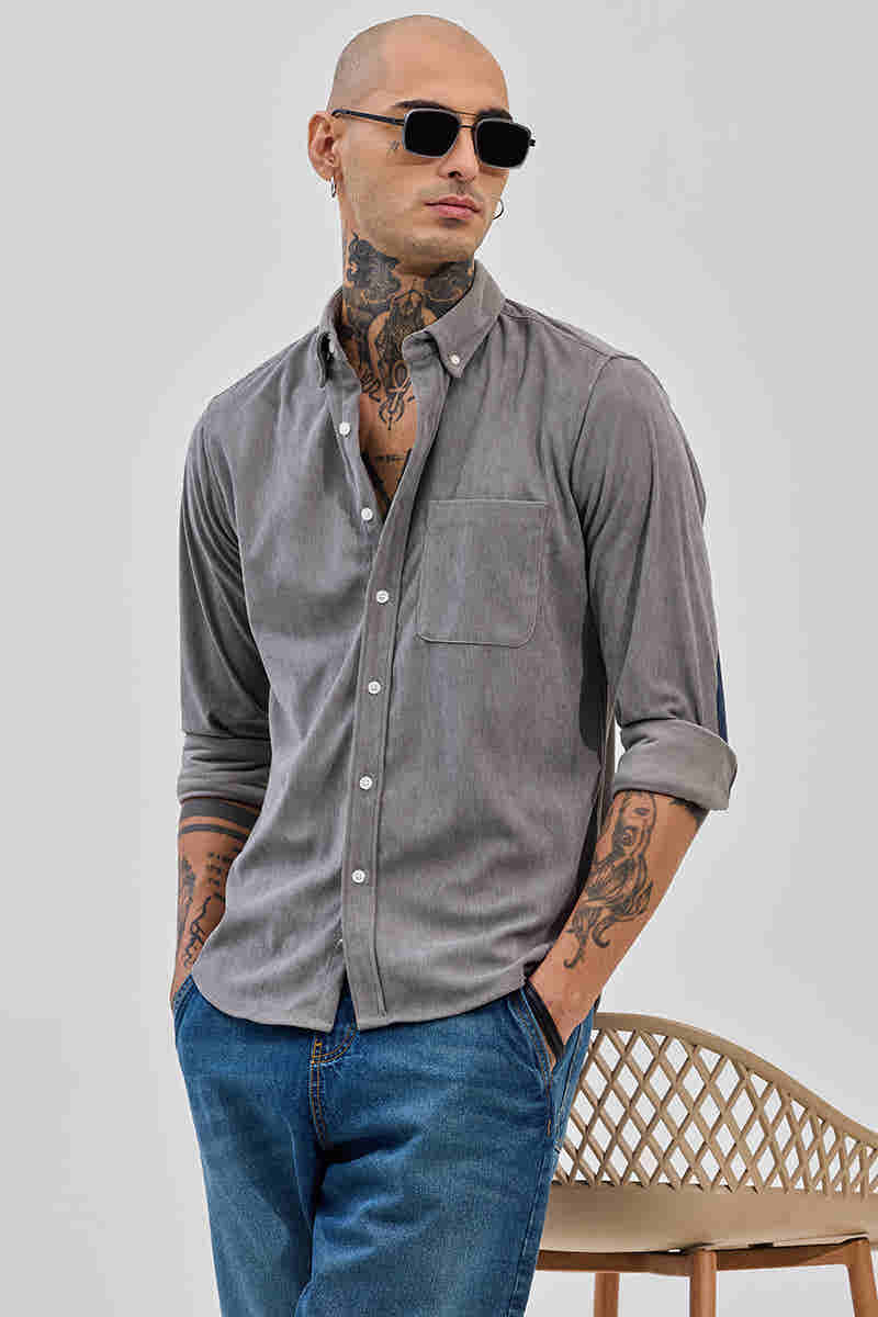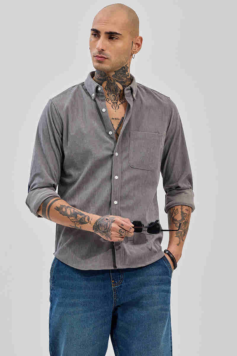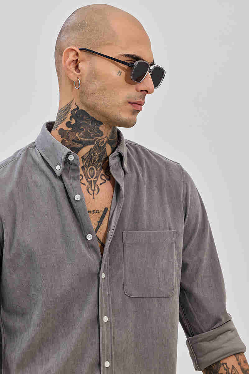 Grey Solid Regular Fit Shirt