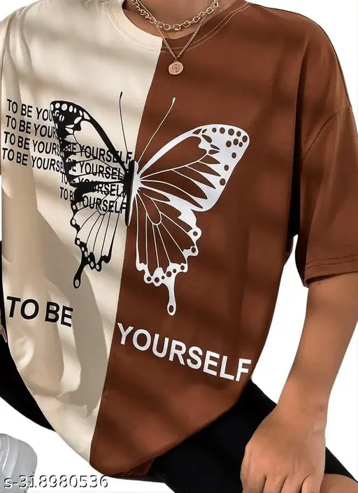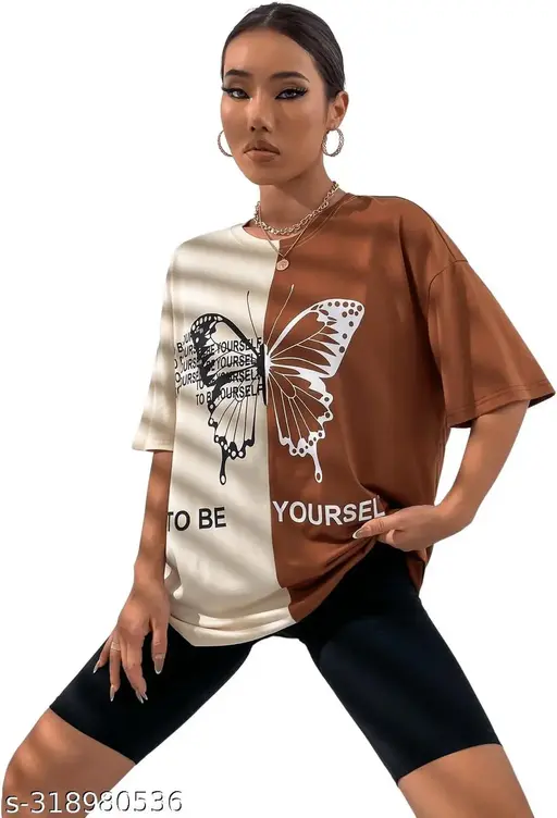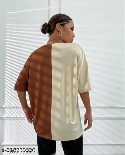 Name : Women’s oversized tshirt for women with a colour combination of beige and coffee colour tshirt